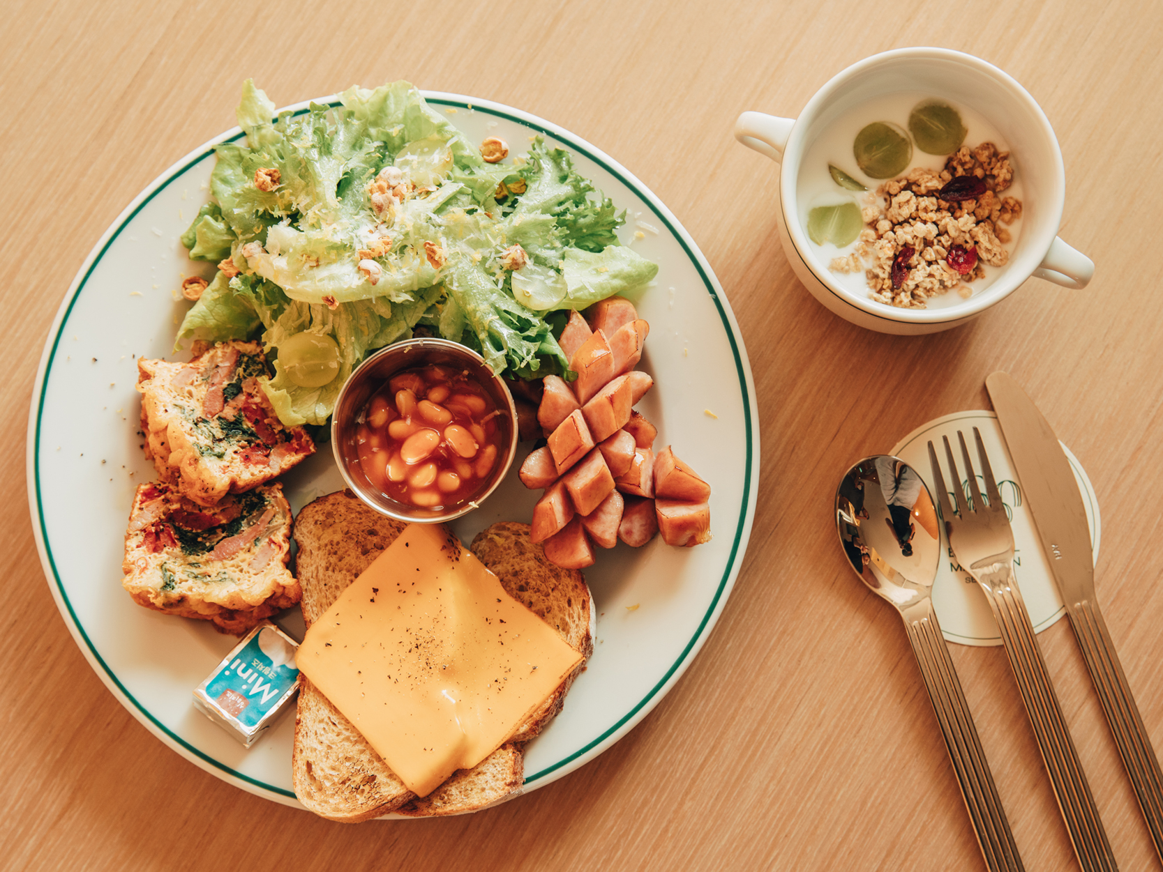 - 체다치즈가 올려진 통밀빵